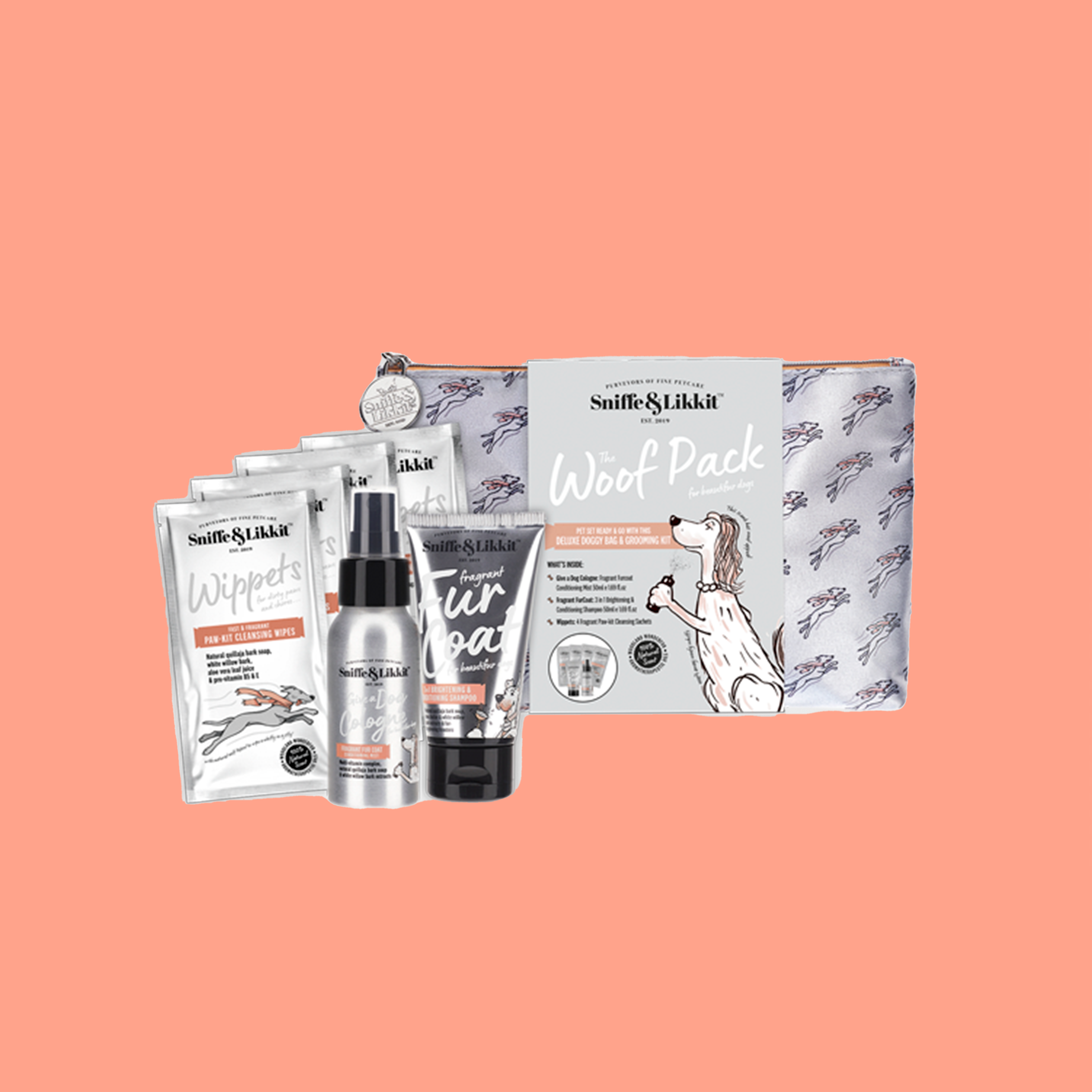This combines various ingredients so please refer to the listings for Fragrant Fur Coat Shampoo, Give A Dog Cologne, Wippets Wipes and Scent Somethin' Nice for all details