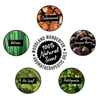 Cedarwood has a sweet woody aroma. Vetiver is a root plant, much like crushed grass. Ho Leaf is a delicate evergreen leaf and Petitgrain is derived from orange trees. Juniper juice is extracted from berries and helps calm and relax.